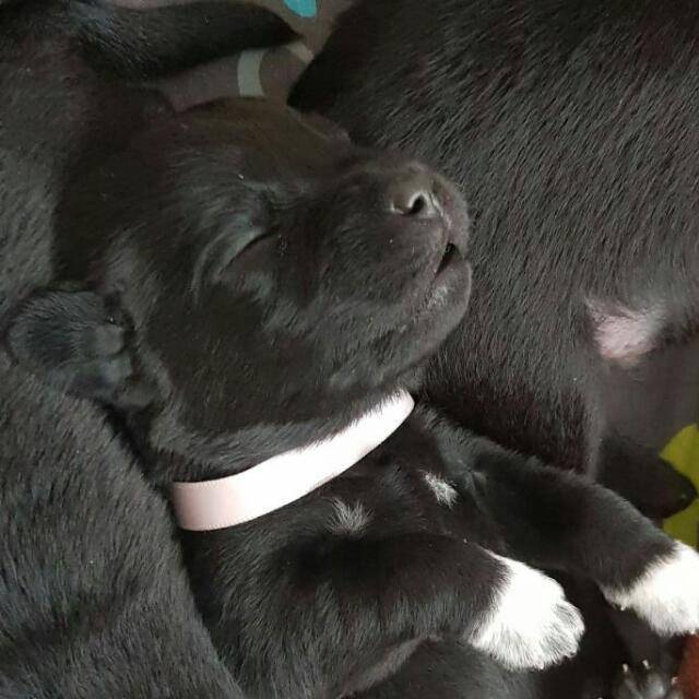 Er volgde een 2e verrassing: 1 teefje kwam ter wereld met witte voeten. De labrador stamt oorspronkelijk af van de St. John's hond en soms vind je dit via de kleur vererving nog terug. Bovendien was ze met 170 gram ! de allerkleinste uit het nest en was het maar de vraag of we haar groot konden brengen. Kregen gelijk een handleiding hoe we met sonde voeding om moesten gaan.
